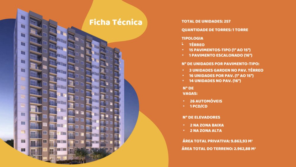 257 unidades em 1 torre 16 unidades por andar 2 Elevadores