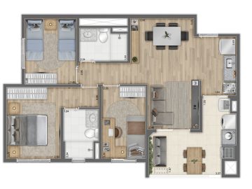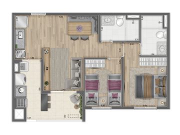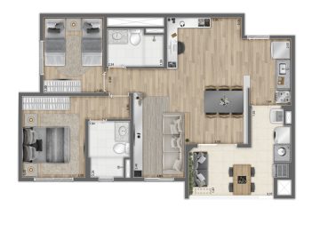 2 DORMS. COM SUÍTE E TERRAÇO GOURMET (COM OPÇÃO SALA AMPLIADA)