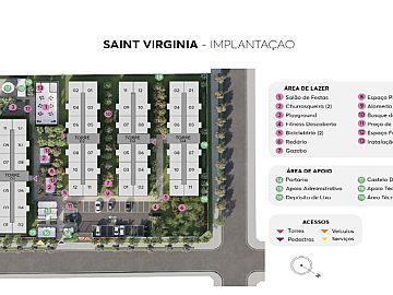 Empreendimento SAINT VIRGÍNIA na planta em construção. Previsão de entrega AGO/28. Metragem 32,47 até 34,09m² 2 dorms Vaga de garagem (OPCIONAL). Itens de lazer: Salão de festas | 2 churrasqueiras | Playground | Espaço Piquenique Praça de Boas-Vindas | Gazebo | Bosque de Leitura | Redário Fitness Descoberto | Espaço Família | Alameda dos Aromas | Bicicletário (10 vagas) Unidades 480 unidades 4 torres | Térreo + 9 andares 12 aptos por andar | 2 elevadores por torre Parcelamos a entrada com MRV em ate 48 local: Rua Monsenhor Salim, 310 - Jardim das Oliveiras - São Paulo/SP a partir R$ 255.990,00