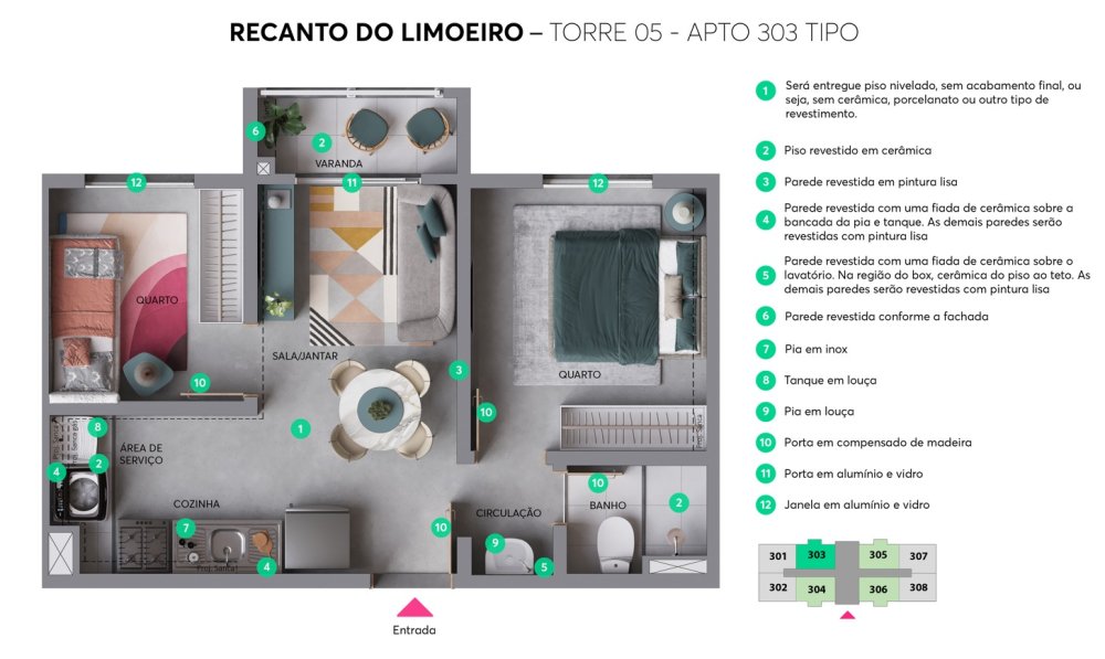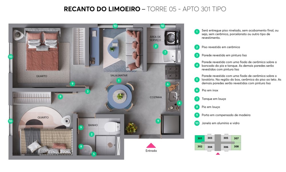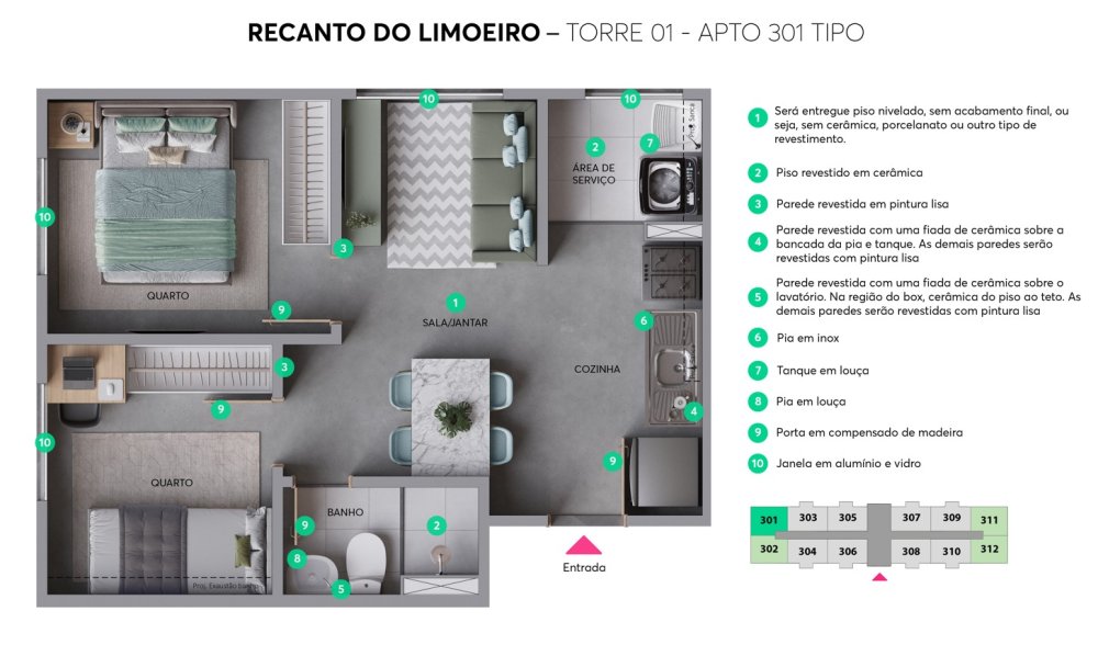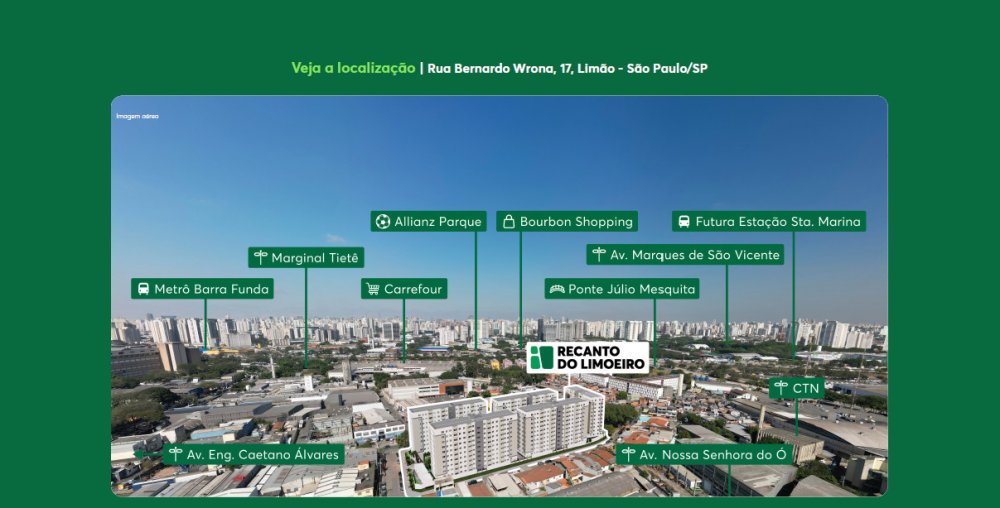 Empreendimento RECANTO DO LIMOEIRO na planta em construção. Previsão de entrega OUT/27. Metragem 33,42 até 35,33m² 2 dormitórios: 34,09m², 34,30m², 35,02m², 35,19m² 2 dormitórios com varanda: 35,04m², 35,30m², 35,53m², 36,39m², 36,63m² - Área privativa: 16,73m² a 30,87m² Sem vagas de garagem Itens de lazer: Salão de festas; Praça da leitura; Lavanderia; Piquenique; Lounge; Espaço de convivência; Praça da família; Praça de boas-vindas; Playground; Playbaby; Espaço fitness; Academia; Praça das festas; Espaço gourmet Unidades 560 - 5 torres de 10 andares cada (térreo + 9) Parcelamos a entrada com MRV em ate 60x local: Av. Bernardo Wrona, 17, Limão - São Paulo a partir R$ 269.990,00