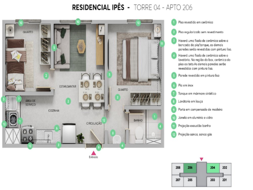 712 unidades em 4 torres 24 andares - 12 apartamento por andar